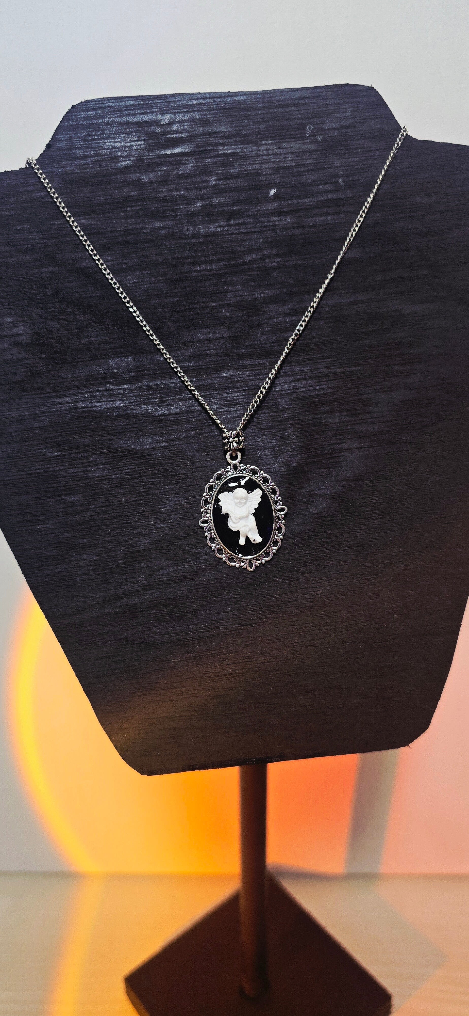 Beautiful necklace with angel choose leather string or silver color chain