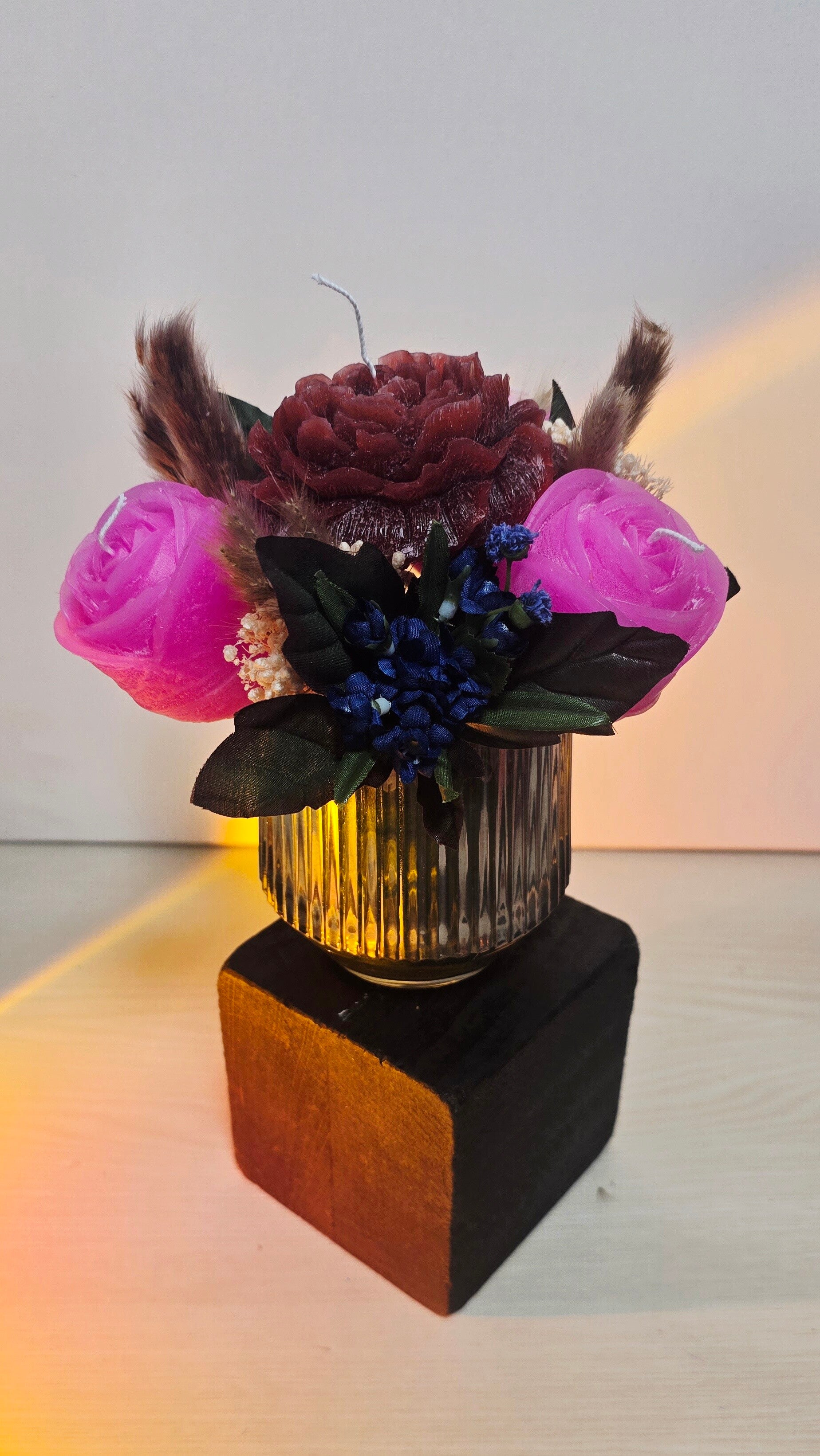Combining the soft glow of candles with the delicate charm of flowers, this handcrafted piece brings harmony, and beauty to any space. Perfect for gifting, home décor, or special occasions.