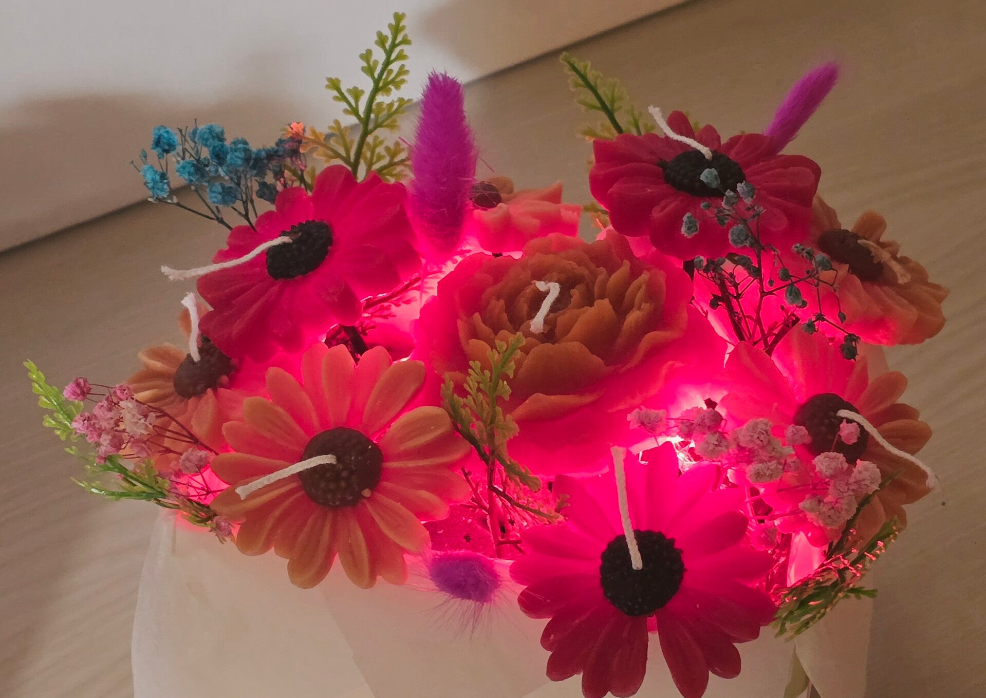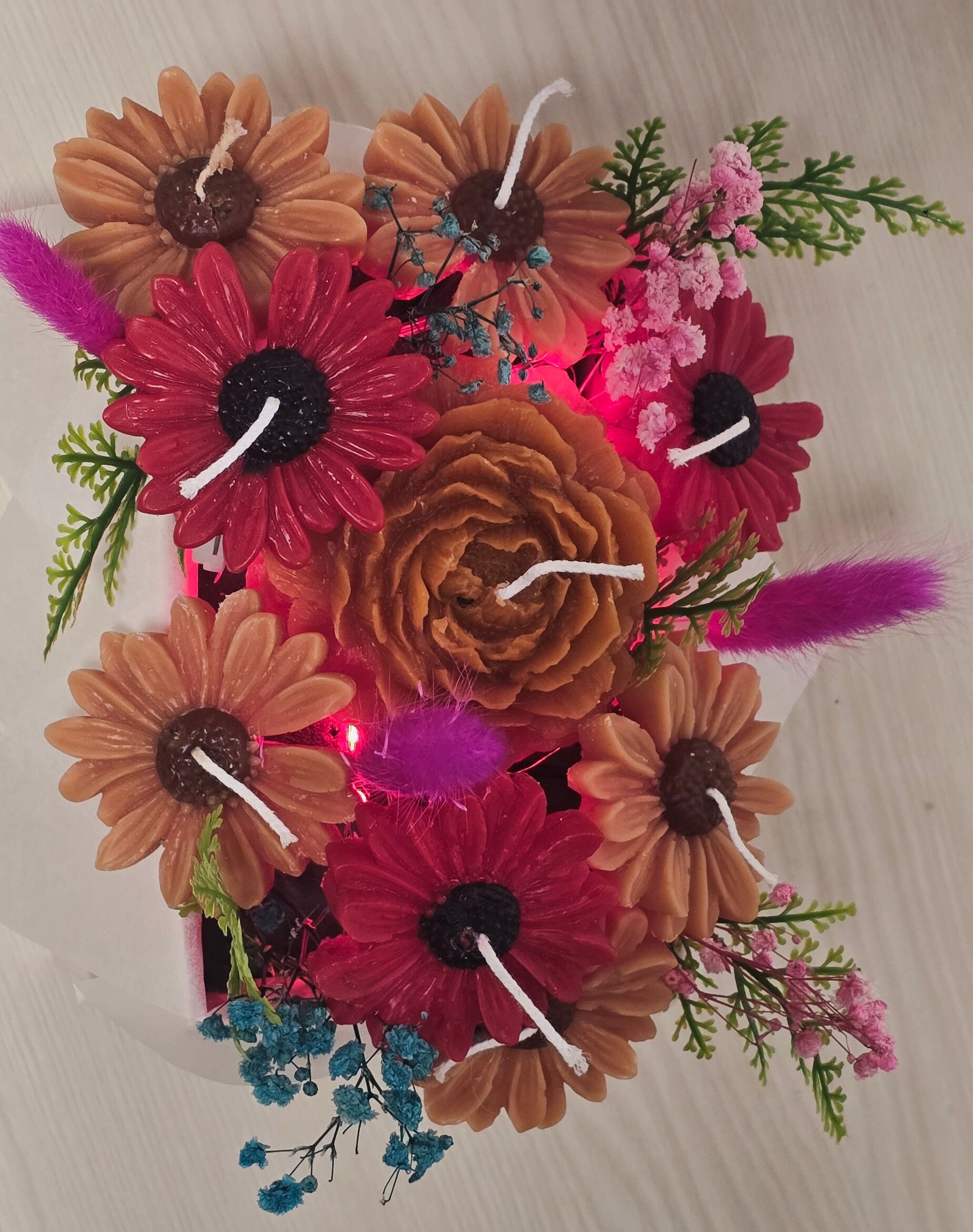 A stylish blend of soft candlelight and elegant florals. This bouquet adds warmth, beauty, and a modern touch to any space — perfect for gifts, home décor, weddings, or romantic moments. Long-lasting, maintenance-free, and designed to impress.